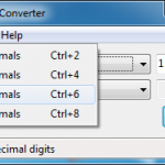 Ctrl+8 : Set convertion’s precision to 8 decimal digits.