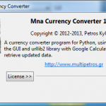 Mna is an open source currency converter program writed in Python using the wxPython library for the user interface and urllib2 library with ECB web service to retrieve updated data.